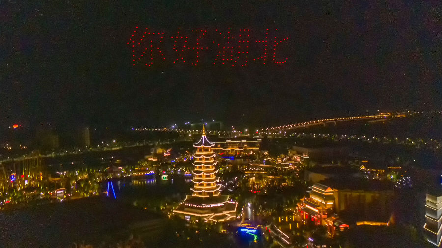 此次荊州方特的“無人機光影秀”動用了300余架無人機,“五一”假期每晚8點升空表演。在時長約13分鐘的表演中,無人機群環(huán)繞荊州方特標(biāo)志性建筑“神州塔”飛行,在空中不斷變換造型和燈光色彩,組成“屈原”、“鳳凰”、“虎座鳥架鼓”、“楚王宮方特門頭”、“祥云”等極具荊楚特色的圖案,并顯示“你好湖北”、“荊州方特”和“致敬勞動者”等字樣,與荊州方特園區(qū)美輪美奐的燈光造景相映成輝。