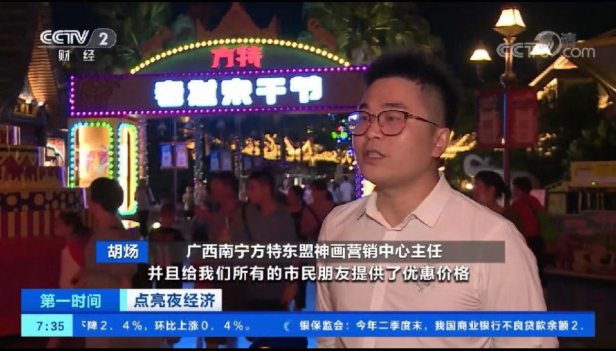 央視新聞?lì)l道和財(cái)經(jīng)頻道的新聞報(bào)道指出,今年暑期,多地景區(qū)的夜游新場(chǎng)景、新玩法、新體驗(yàn)紛紛搶占文旅消費(fèi)市場(chǎng),也更加貼近了廣大游客的需求。在新聞報(bào)道中,央視著重介紹了南寧方特的夜場(chǎng)活動(dòng):“南寧方特東盟神畫(huà)開(kāi)啟了13小時(shí)日夜暢玩模式,當(dāng)夜幕降臨,花車大巡游、美食夜市、嘻哈電音演出等紛紛登場(chǎng),帶給游客赴全新的游玩體驗(yàn)。”