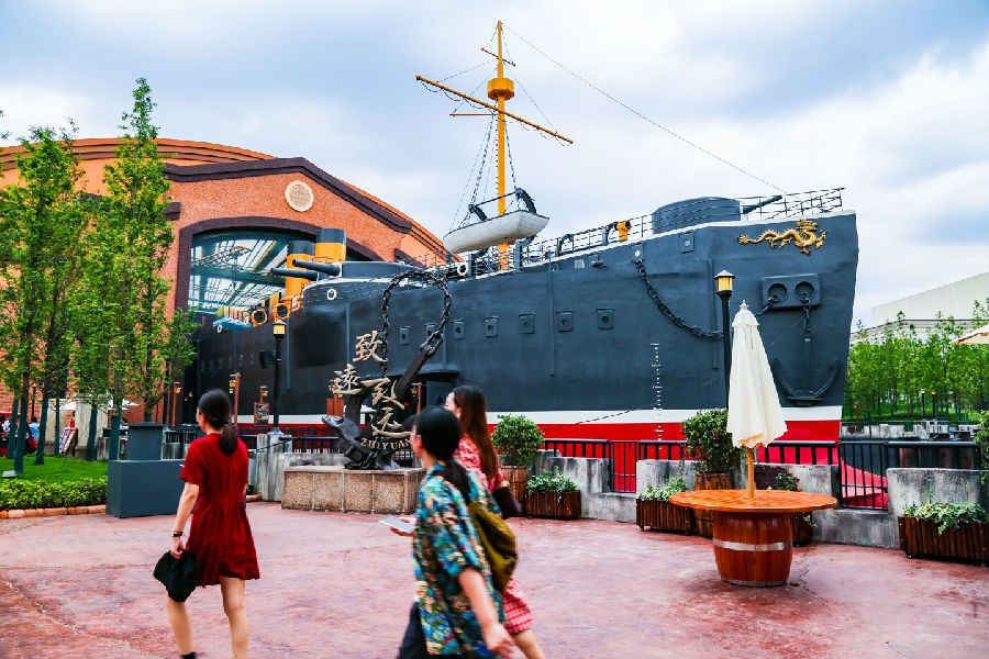 在大型室內(nèi)有軌漂流項(xiàng)目《致遠(yuǎn) 致遠(yuǎn)》,游客們跟隨民族英雄鄧世昌的腳步,親歷“致遠(yuǎn)”號(hào)為國(guó)捐軀的悲壯一幕,繼而跨越百余年時(shí)空,來(lái)到新中國(guó)海軍屹立世界之林的嶄新時(shí)代。