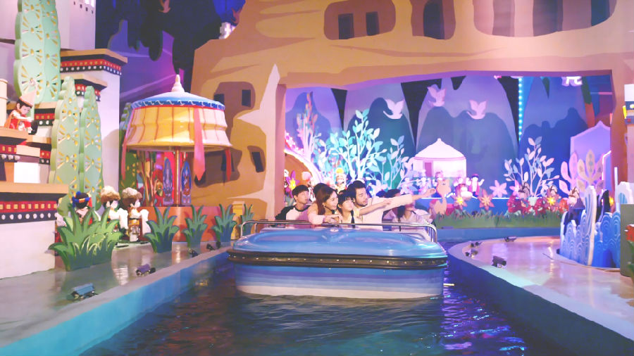 同樣是以成語(yǔ)為主題,大型室內(nèi)漂流項(xiàng)目《成語(yǔ)童話》則讓家長(zhǎng)和孩子在室內(nèi)河道漫游童話般的成語(yǔ)王國(guó),美輪美奐的成語(yǔ)布景、萌趣可愛(ài)的成語(yǔ)主角,讓游客們嘖嘖稱(chēng)奇,紛紛拿出手機(jī)記錄下這夢(mèng)幻般的場(chǎng)景。