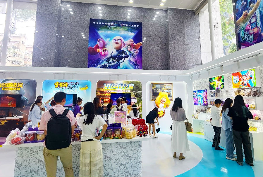本屆華強方特分會場另一吸睛無數的當屬動漫區(qū)域,“熊強”大明星正現身舞臺上演人偶歌舞秀,隨后“熊強”人偶又和觀眾零距離親密互動,現場氣氛節(jié)節(jié)高高漲。今年還設有“熊出沒”裸眼3D拍攝區(qū),可供觀眾拍照留影,栩栩如生的動畫形象以及逗趣歡樂的造型吸引觀眾競相合影,現場氣氛十分熱烈。還看到許多觀眾互動后戀戀不舍,繼續(xù)在現場暢享動漫時空,重溫《熊出沒》《生肖傳奇》等動漫經典,觀賞品味《熊出沒?逆轉時空》《趙琳的探險日記》《熊出沒之小小世界》等多部載譽無數的新作,《熊出沒系列電影MV串燒》、“熊出沒”十周年主題曲《再次與你同行》等多部令人感動的動漫MV也燃爆現場。與此同時,觀眾還可以參與有獎問答、聲優(yōu)模仿秀等眾多互動活動,贏取各式各樣的“熊出沒”周邊,讓在衍生品展售區(qū)購買了玩具、文具、服裝等衍生產品的觀眾甚是羨慕。