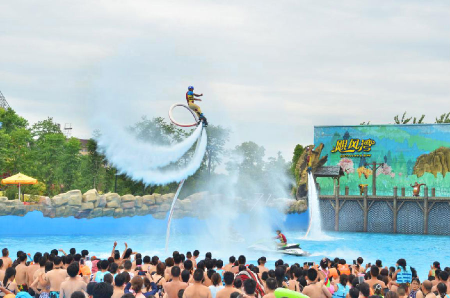 蕪湖方特水上樂園暑期夏威夷狂歡季空中飛人演出