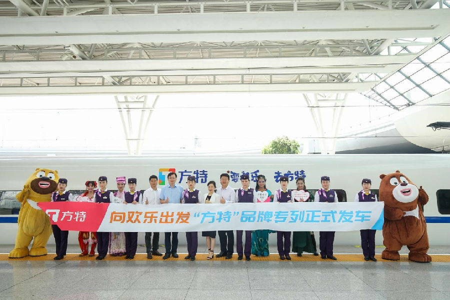 6月11日,在全民關(guān)注的高考剛剛落幕不久,華強(qiáng)方特集團(tuán)冠名的“方特號”D2285次動車組以“向歡樂出發(fā)”為主題,在上海虹橋站舉行發(fā)車儀式。華強(qiáng)方特寧波文化旅游發(fā)展有限公司總經(jīng)理易偉林,華強(qiáng)方特(蕪湖)文化科技有限公司常務(wù)副總經(jīng)理佟興,中國鐵路上海局集團(tuán)有限公司、上海鐵路文化廣告發(fā)展有限公司副總經(jīng)理沈鵬,華鐵傳媒集團(tuán)有限公司第五事業(yè)部總經(jīng)理李建霞等嘉賓,以及眾多媒體記者共同出席了當(dāng)天的發(fā)車儀式。